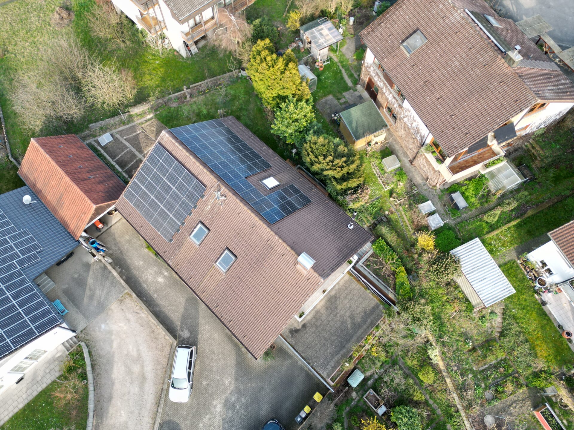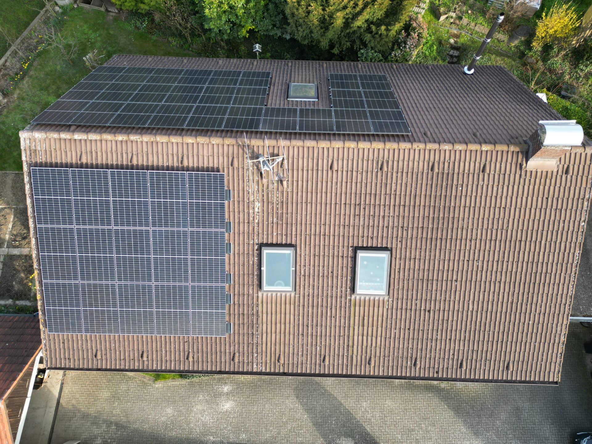 Die Anlage ist auf einem Ziegeldach in Ost-West-Ausrichtung installiert. Diese Bauweise ermöglicht eine gleichmäßigere Stromproduktion über den Tagesverlauf und ist besonders effizient für die Eigenverbrauchsoptimierung.