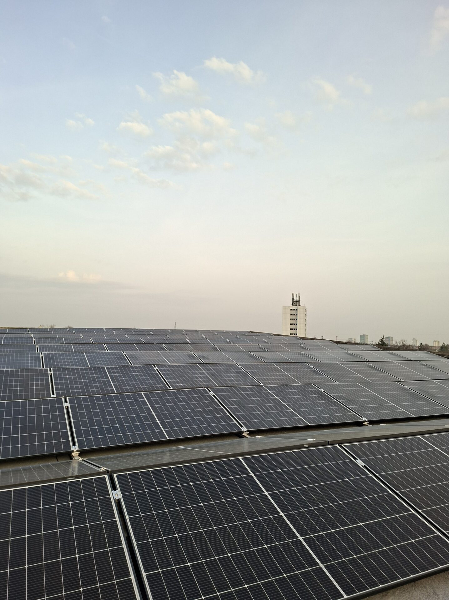 Ausrichtung: Ost-WestDie Anlage ist auf einem Flachdach in Ost-West-Ausrichtung installiert. Diese Bauweise ermöglicht eine gleichmäßigere Stromproduktion über den Tagesverlauf und ist besonders effizient für die Eigenverbrauchsoptimierung.